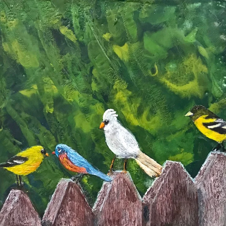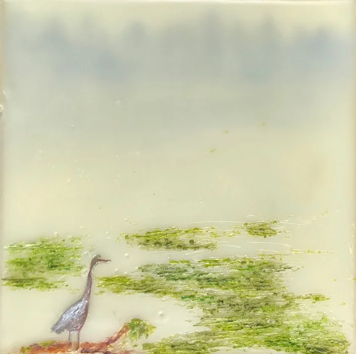 HINDER ME NOT, 2019, encaustic on paper on board, 6 x 6"