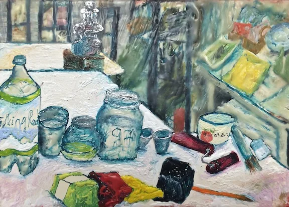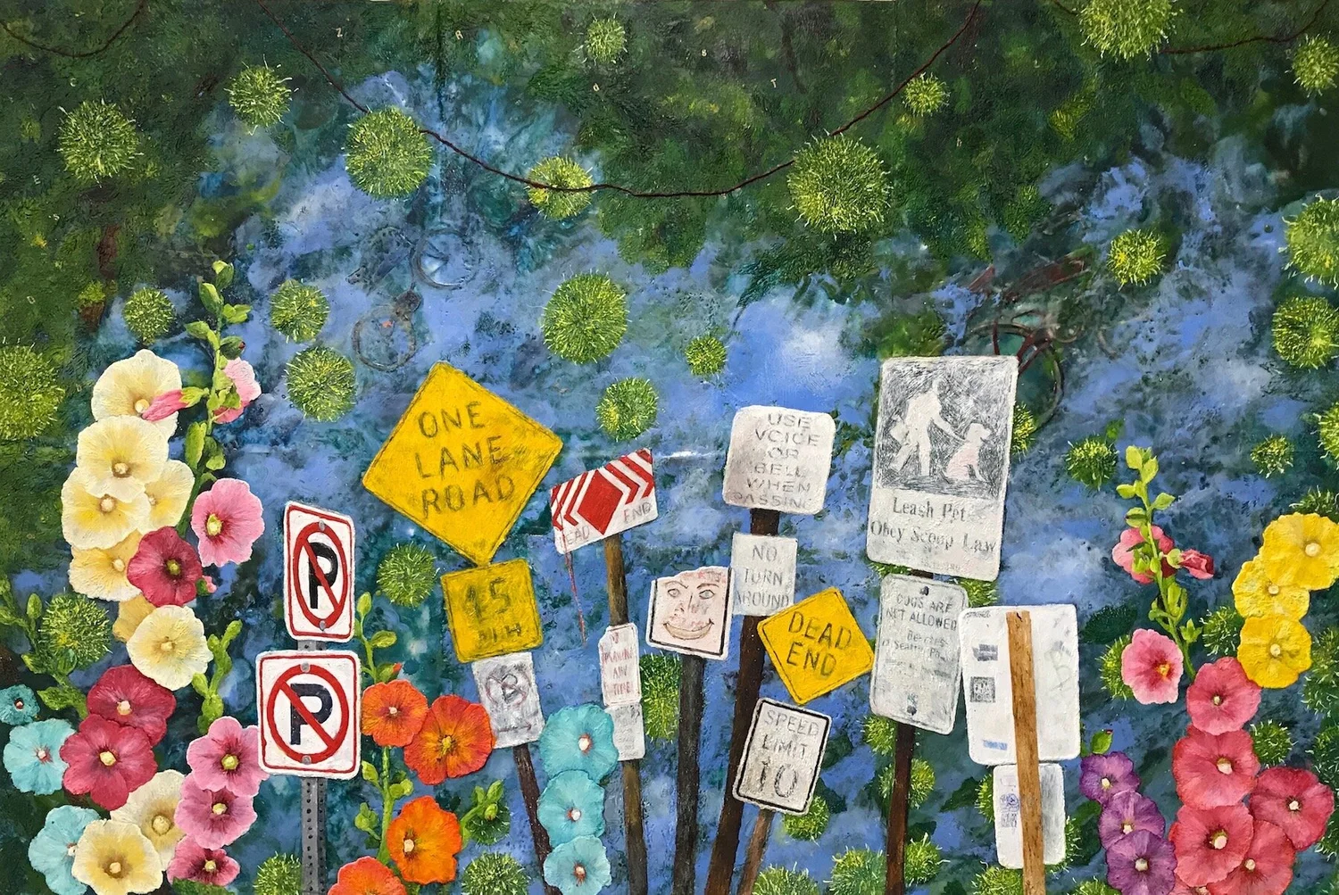 ONWARD AND UPWARD, 2019/2020, encaustic,pigment stick on paper mounted on board, 28 x 33"
